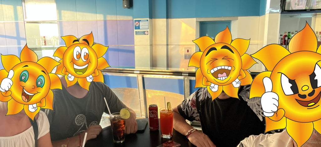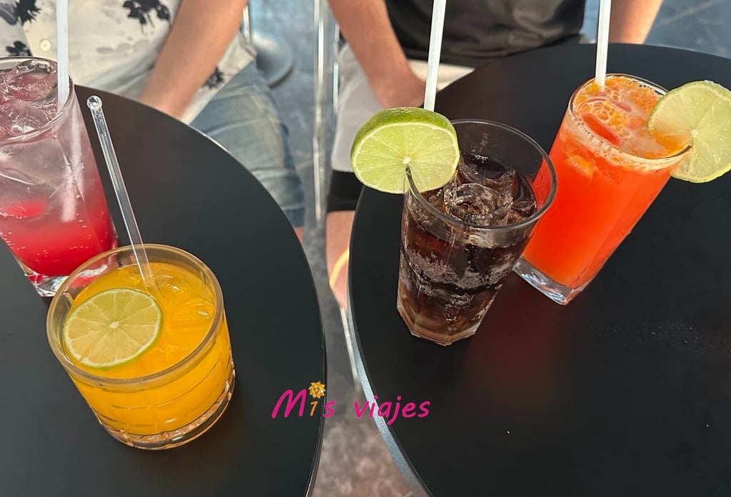 Aunque el bar tiene aire acondicionado, se encuentra todo acristalado y aunque las cortinas están bajadas, la temperatura hace que apetezca ese cóctel.