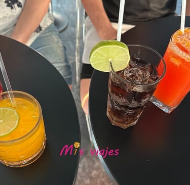 El camarero nos trae una pequeña carta con una selección de refrescos, agua y cócteles con y sin alcohol.
