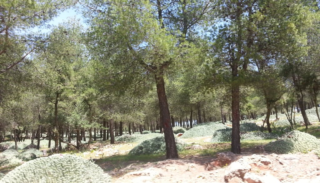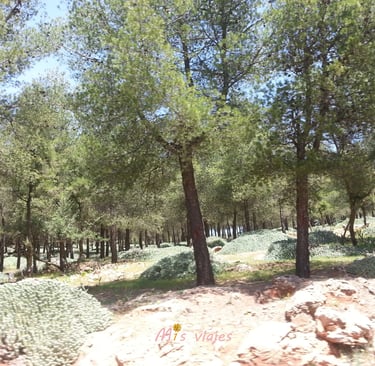 Ahora el paisaje se convierte en un bello pinar, nativos del Mediterráneo, están adaptados a las alturas del Atlas (800-1800m).