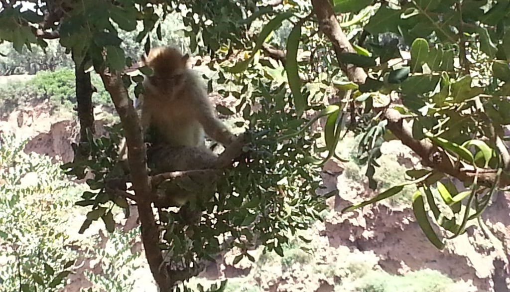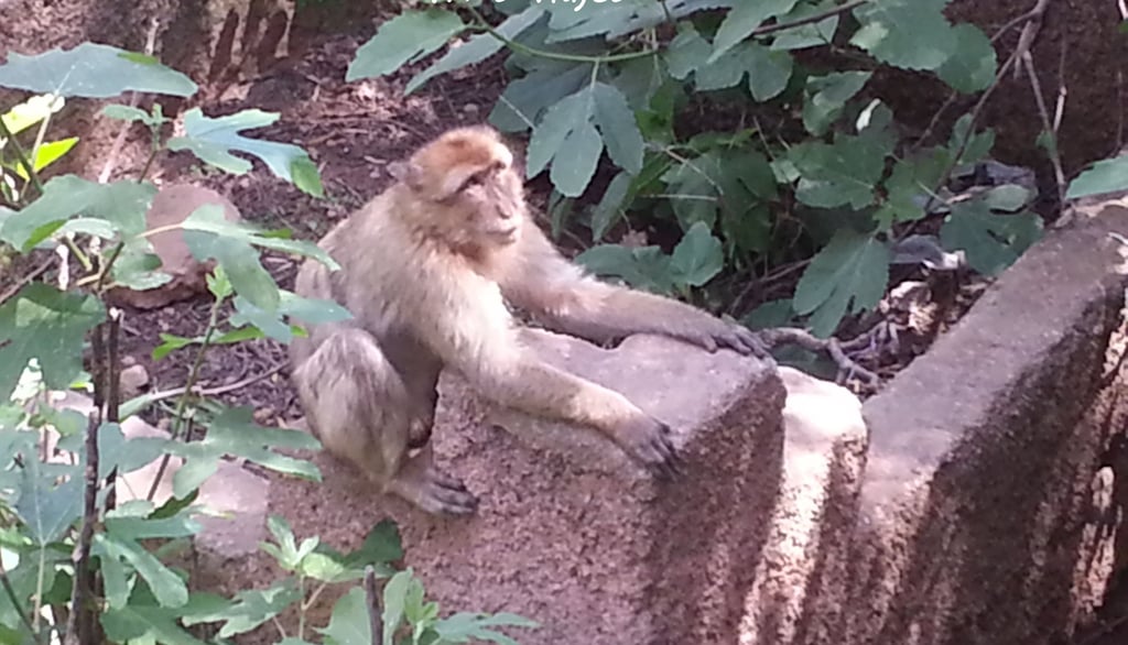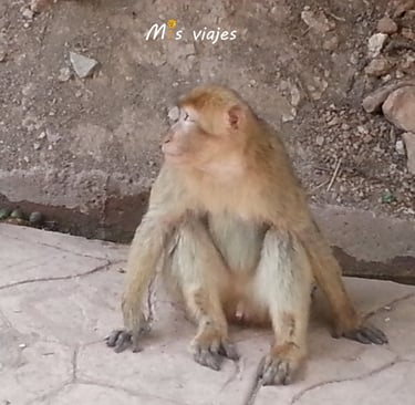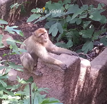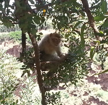 Panorámica de un macaco en las Cascadas de Ouzoud