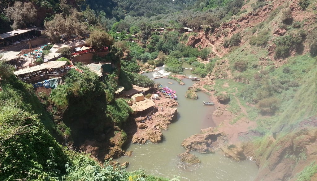 Panorámica de los restaurantes y chiringuitos en la Catarata de Ouzoud