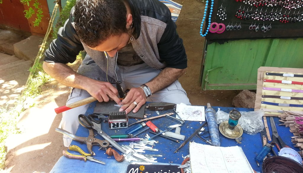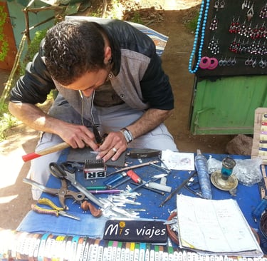 En este bello paisaje también encontramos artesanos, joyeros, especializados en plata bereber, fabricando collares, pulseras y anillos.