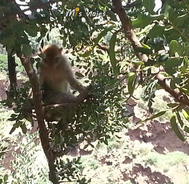 Los macacos de Berbería viven en las montañas del Atlas Medio, como en Ouzoud, donde hay bosques de cedros, olivares y acantilados perfectos para trepar.