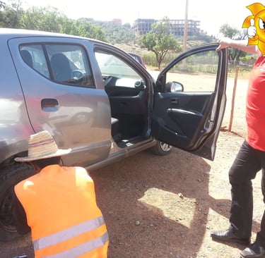 Cuando regresamos al coche "casualmente" tenemos una rueda pinchada jejeje...