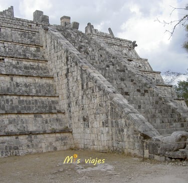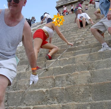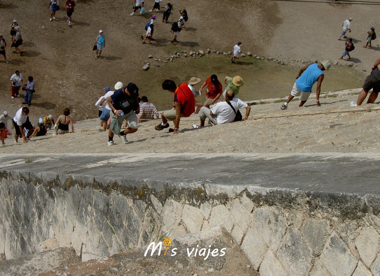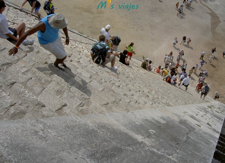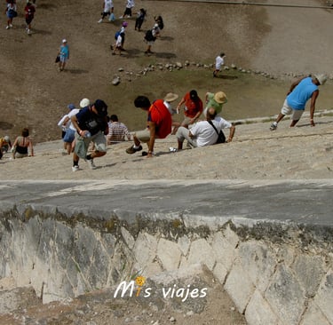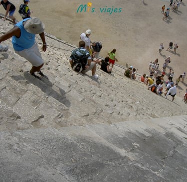 m1s viajes bajando por los escalones de la Pirámide de Kukulkán