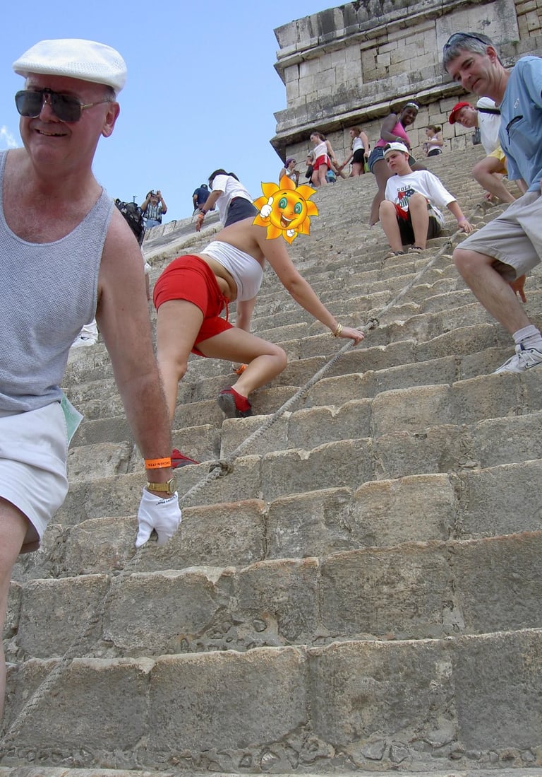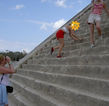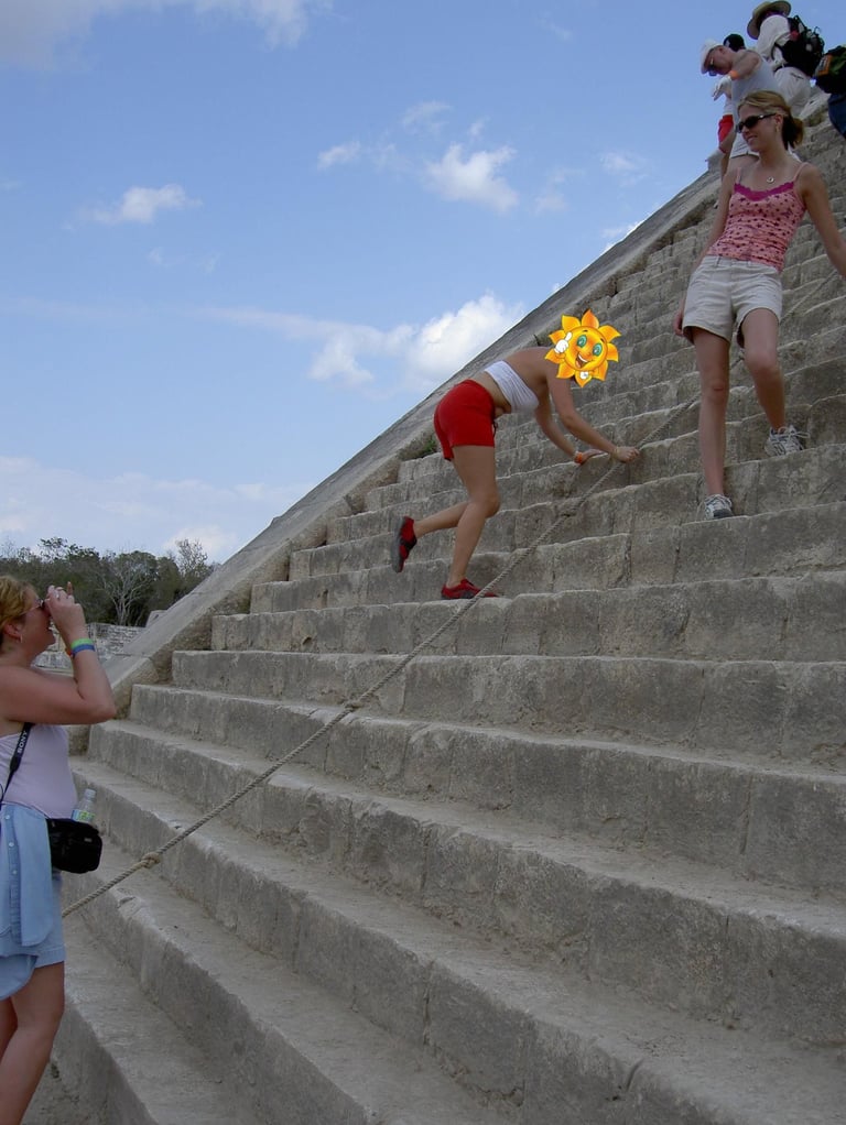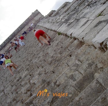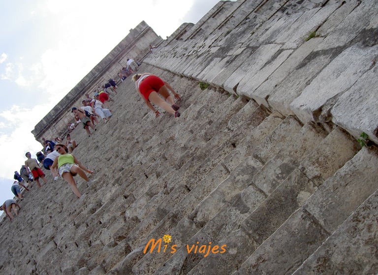 m1s viajes subiendo a Chichén Itzá en 2005