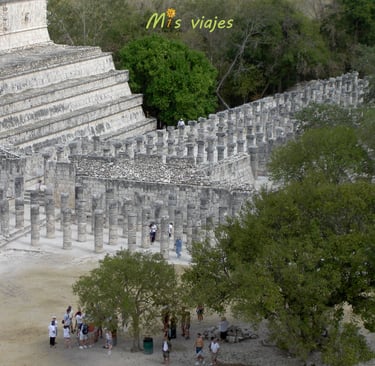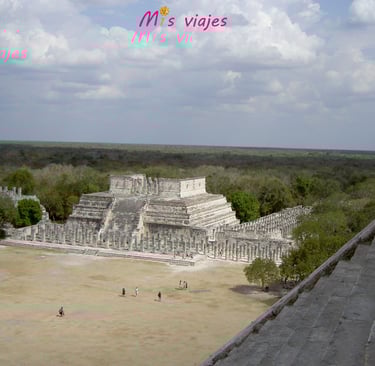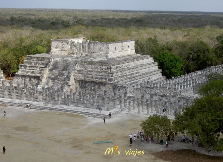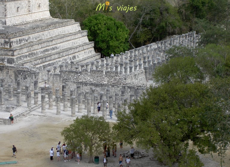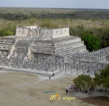 El Templo de los Guerreros, un edificio imponente que está rodeado por una serie de columnas talladas que representan guerreros mayas.