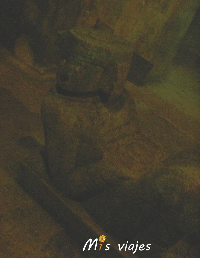 Dentro de Chichen Itzá, se encuentra una escultura tumbada que representa a un Chac Mool, una figura muy característica de la cultura maya.