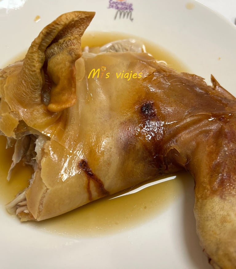 Raciones de cochinillo asado con piel crujiente en el Mesón José María en Segovia