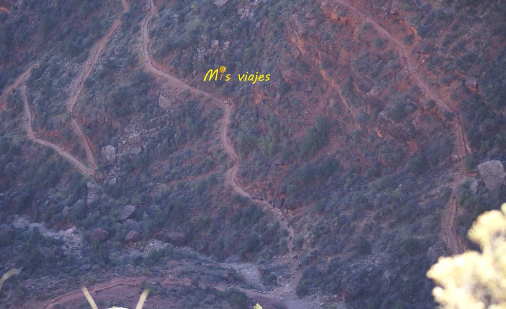 Empieza en el pueblo del South Rim (Gran Canyon Village) y baja exactamente hasta el río Colorado.