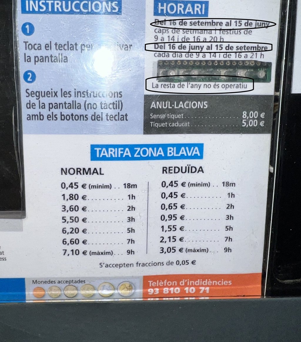 Hay ocasiones en las que en algunas fechas están exentos estos aparcamientos del pago, así que cuando nos acercamos a pagar, leemos las fechas.