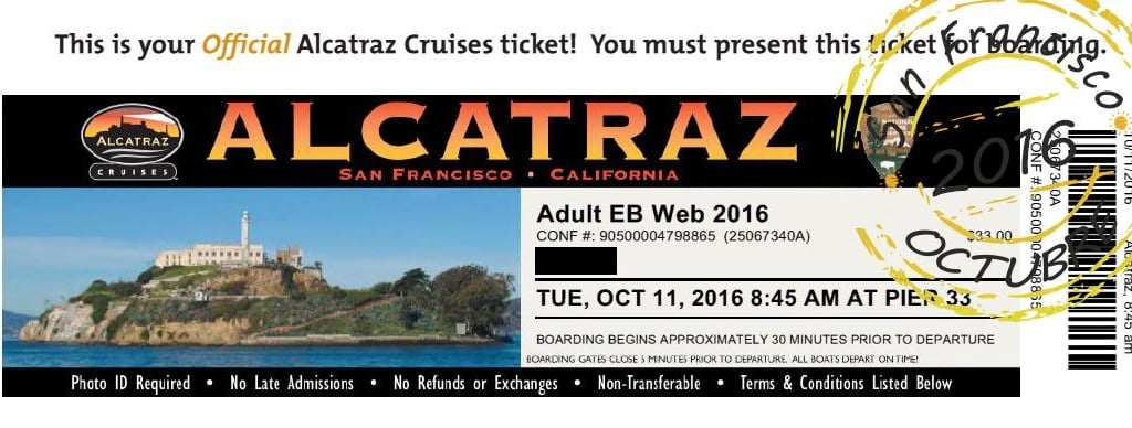 Ticket de entrada a Alcatraz.