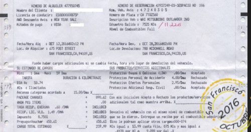 Llegamos a la oficina de Avis en 675 de Post Street. Solicitamos el seguro a todo riesgo, como siempre en nuestros alquileres.