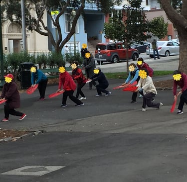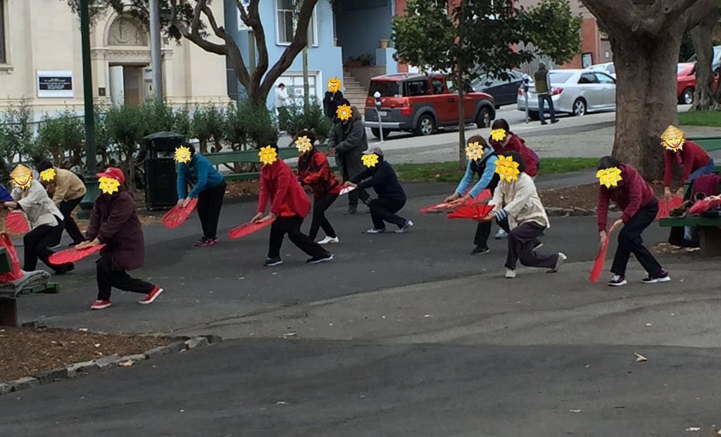 Asiáticas haciendo tai chi en Washington Square.