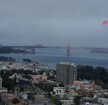 Panorámica del Golden Gate Bridge con su famosa niebla desde la Torre de Coit.