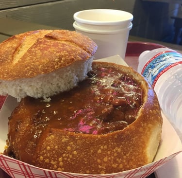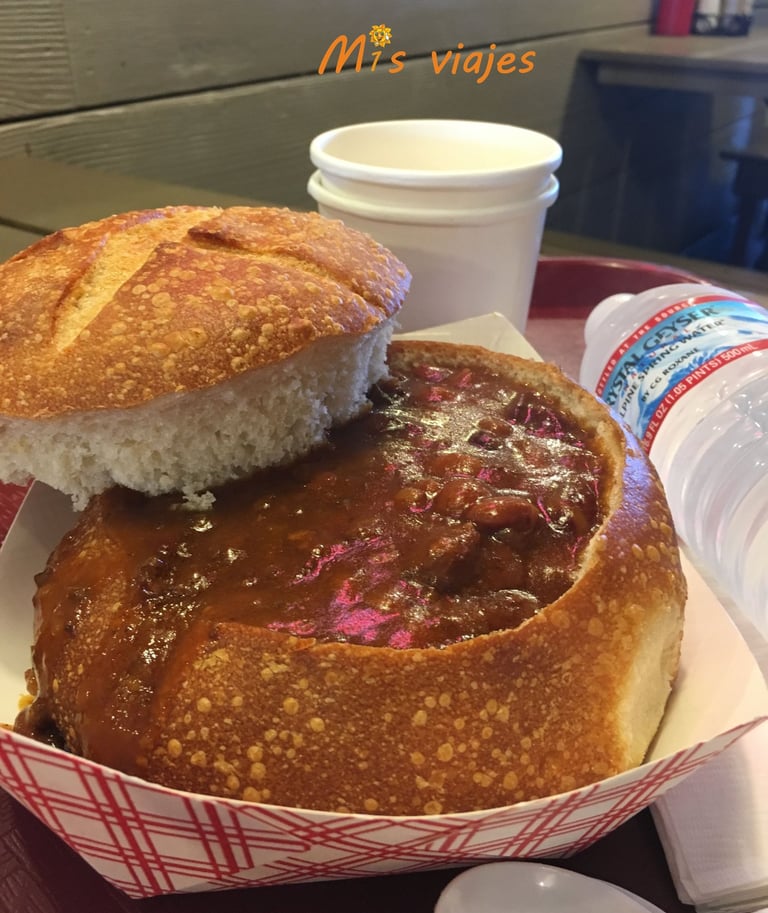 Otra de las cosas famosas que hacer en Fisherman´s Wharf es comerse un Clam Chowder, se trata de una sopa de almeja servida dentro de un redondo pan casero.