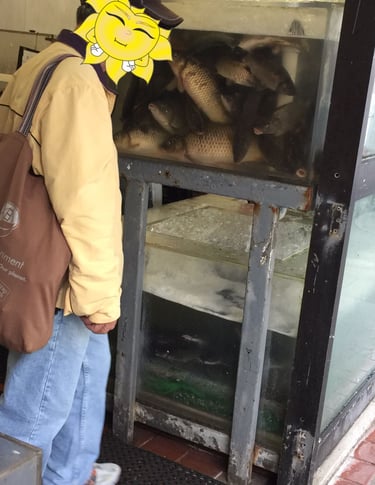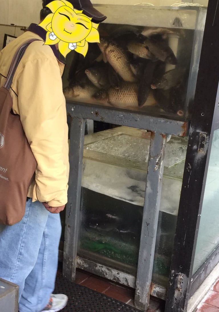 Asiático en la pescadería de Chinatown.