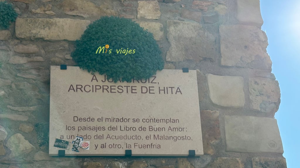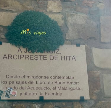 Desde el mirador del acueducto, encontramos una placa conmemorativa dedicada al Arcipreste de Hita.