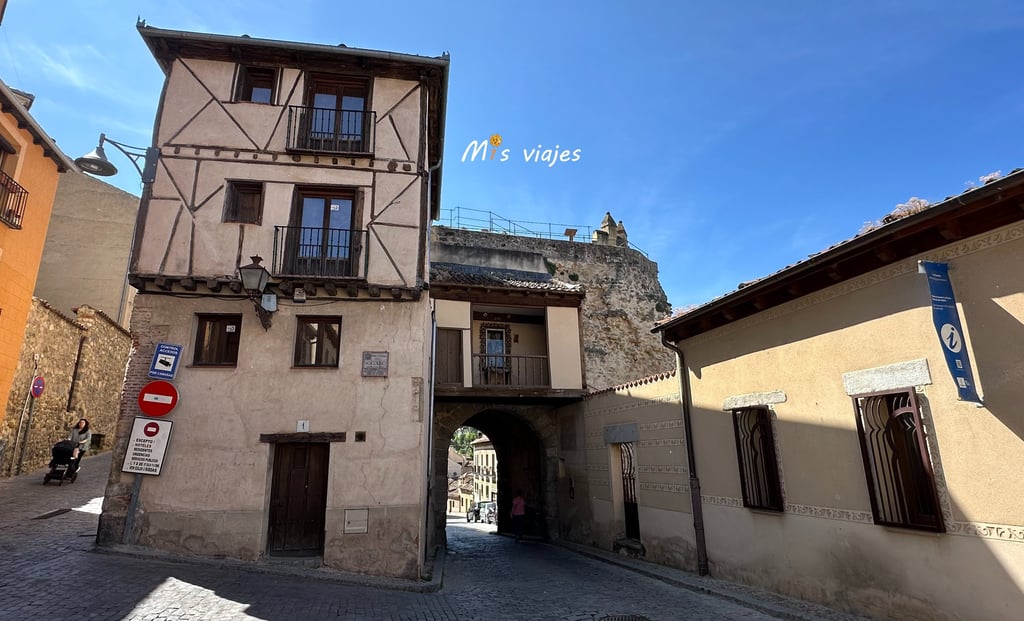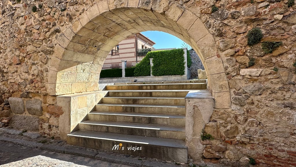 Ascendiendo por la escalinata lateral del acueducto, nos encontramos con el bello Postigo del Consuelo, un paso de personas a pie, en la muralla Medieval de Segovia.