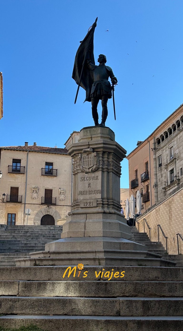En la misma plaza que la Iglesia de San Martín nos encontramos con la estatua de Juan Bravo.