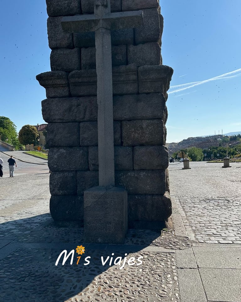 La leyenda de la cruz bajo uno de los arcos del Acueducto