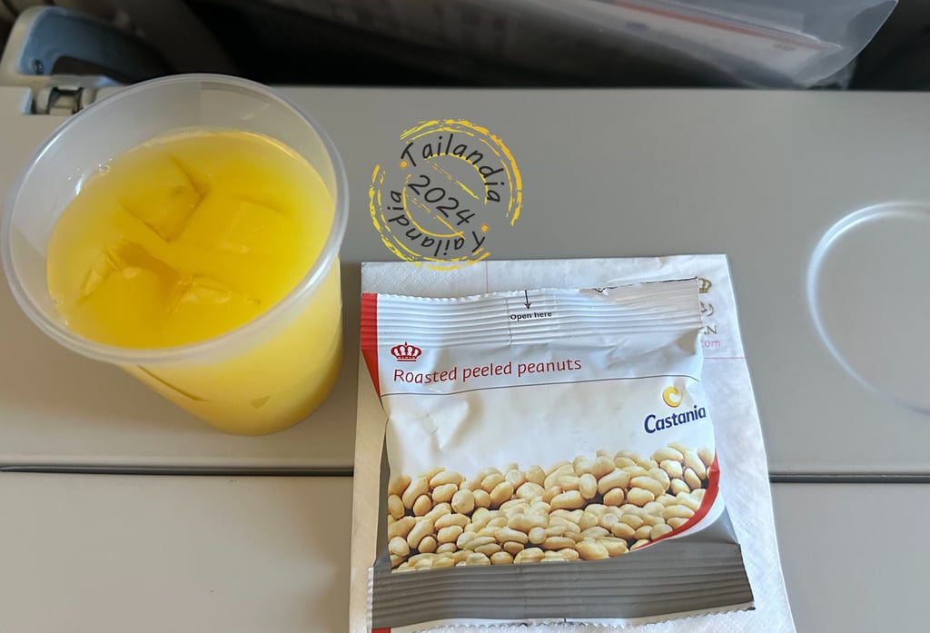 Además en repetidas ocasiones durante el vuelo pasan ofreciendo, agua, zumos, refrescos, etc. sin necesidad de pedirlo.