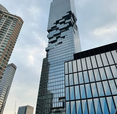 El King Power Mahanakhon es el rascacielos más alto y emblemático de Bangkok, conocido por su diseño único y su altura imponente. Con sus 314 metros y sus 78 pisos es un argumento más que suficiente para empezar nuestra ruta con este gran edificio.