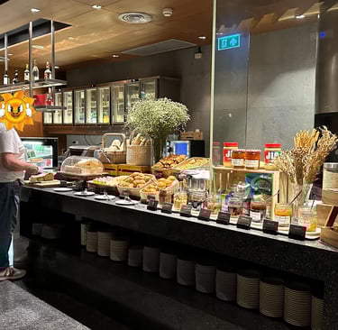 Extenso bufet de bollería y mermeladas en el Amara Bangkok Hotel