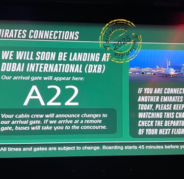 Hacemos escala en Dubai, que para nosotros es el mejor lugar donde hacer escala ya que es nuestra mitad de trayecto. Un aeropuerto muy bien señalizado, muy occidental y con muchas conexiones.
