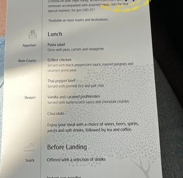 Además nada más despegar, te dan una carta donde ves los dos menús de comida a escoger y el snack de cortesía. Eso te da un margen de tiempo para poder pensar que te apetece comer.