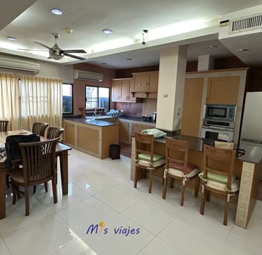 Para nosotros el punto fuerte del apartamento además del espacio, cocina, salón, dos baños, etc. es la vista del rascacielos Mahanakhon desde el salón