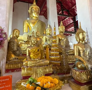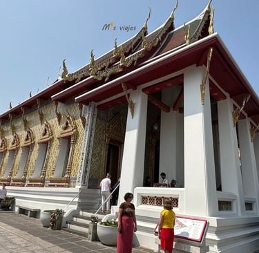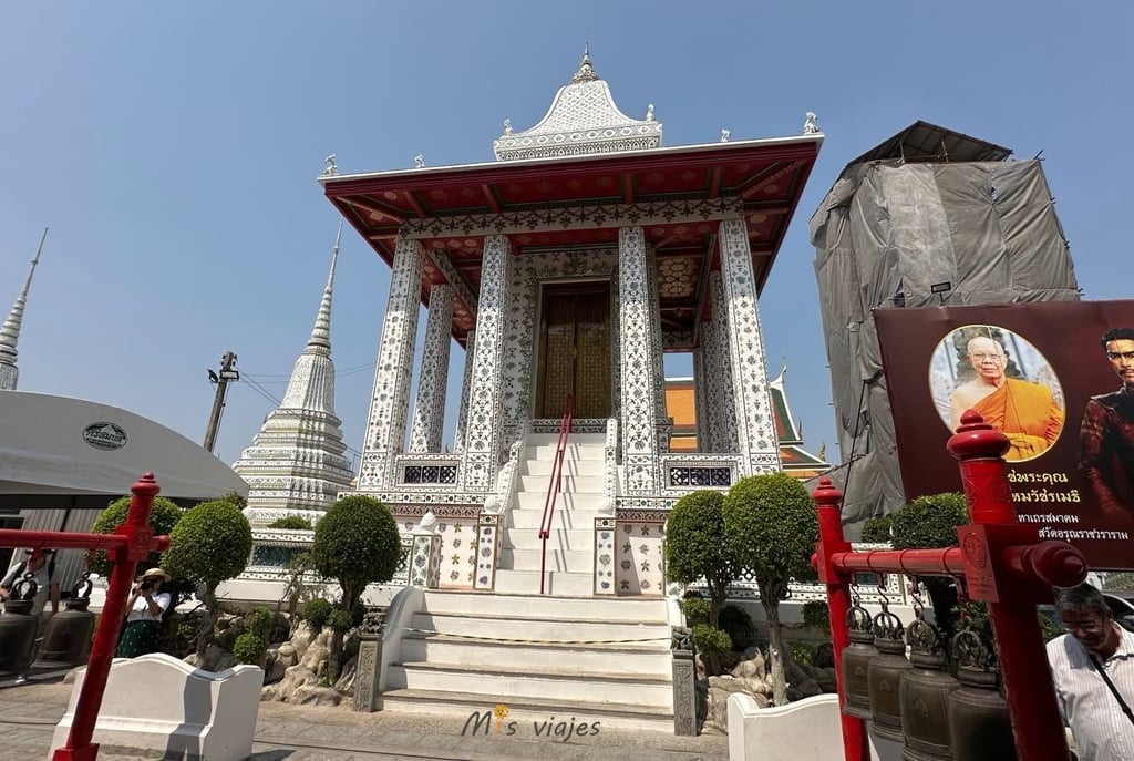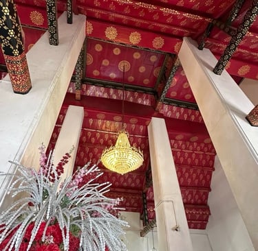 Esta sala está decorada de manera más sencilla en comparación con el prang, pero sigue siendo un espacio sagrado y de gran significado espiritual.