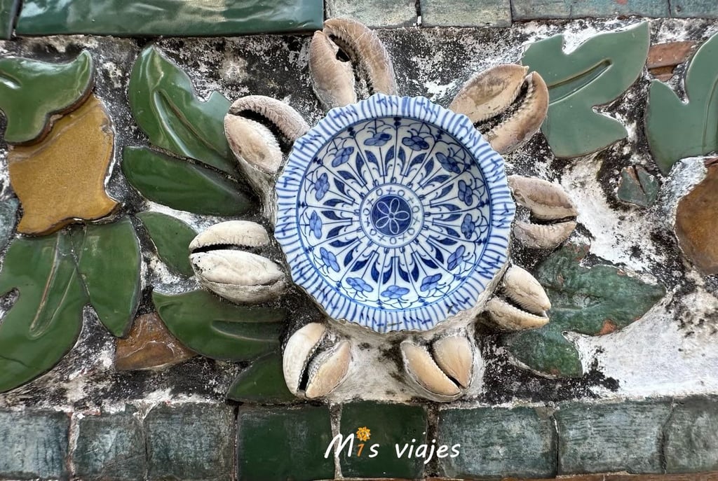 La porcelana que decora el Wat Arun proviene de China y fue traída a Tailandia durante el período de influencia de la dinastía Qing, alrededor del siglo XVIII.
