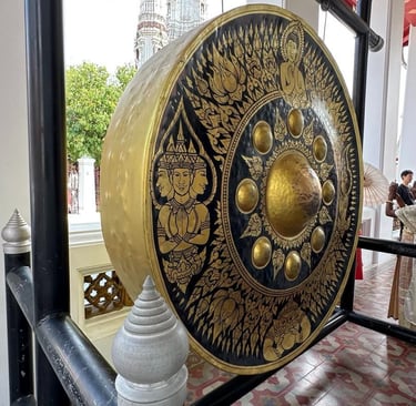 Los gongs en los templos tailandeses suelen ser utilizados en ceremonias religiosas y rituales de meditación.