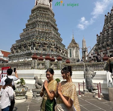 Muchos turistas y visitantes eligen vestirse con trajes tradicionales tailandeses para tomar fotografías, ya sea para capturar la belleza del lugar o como parte de una experiencia cultural.