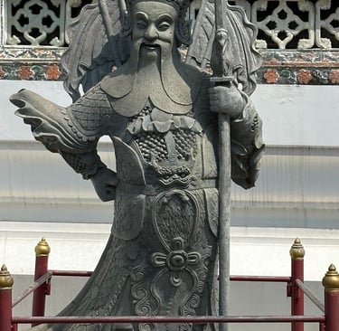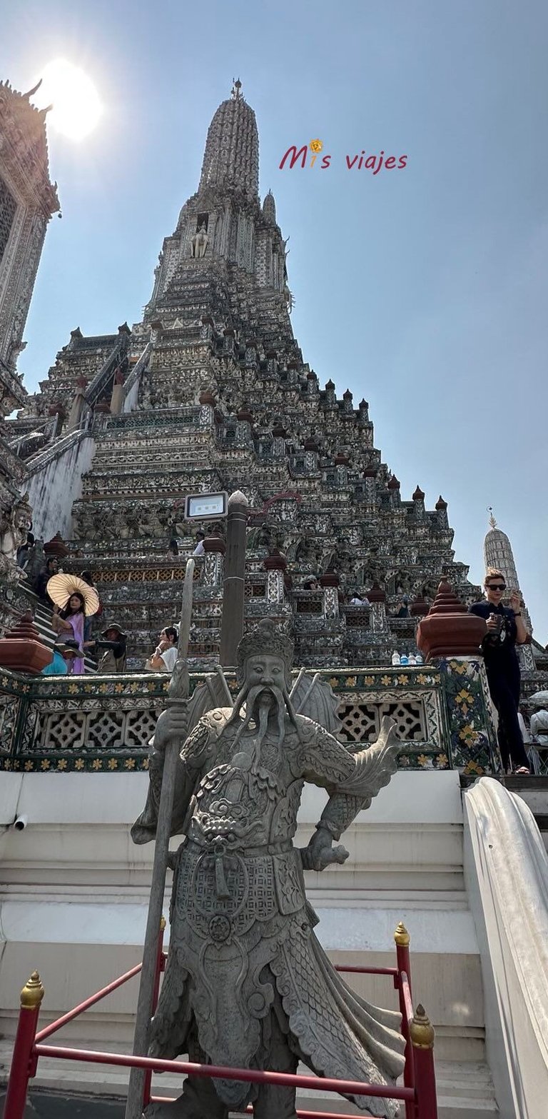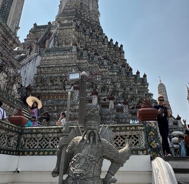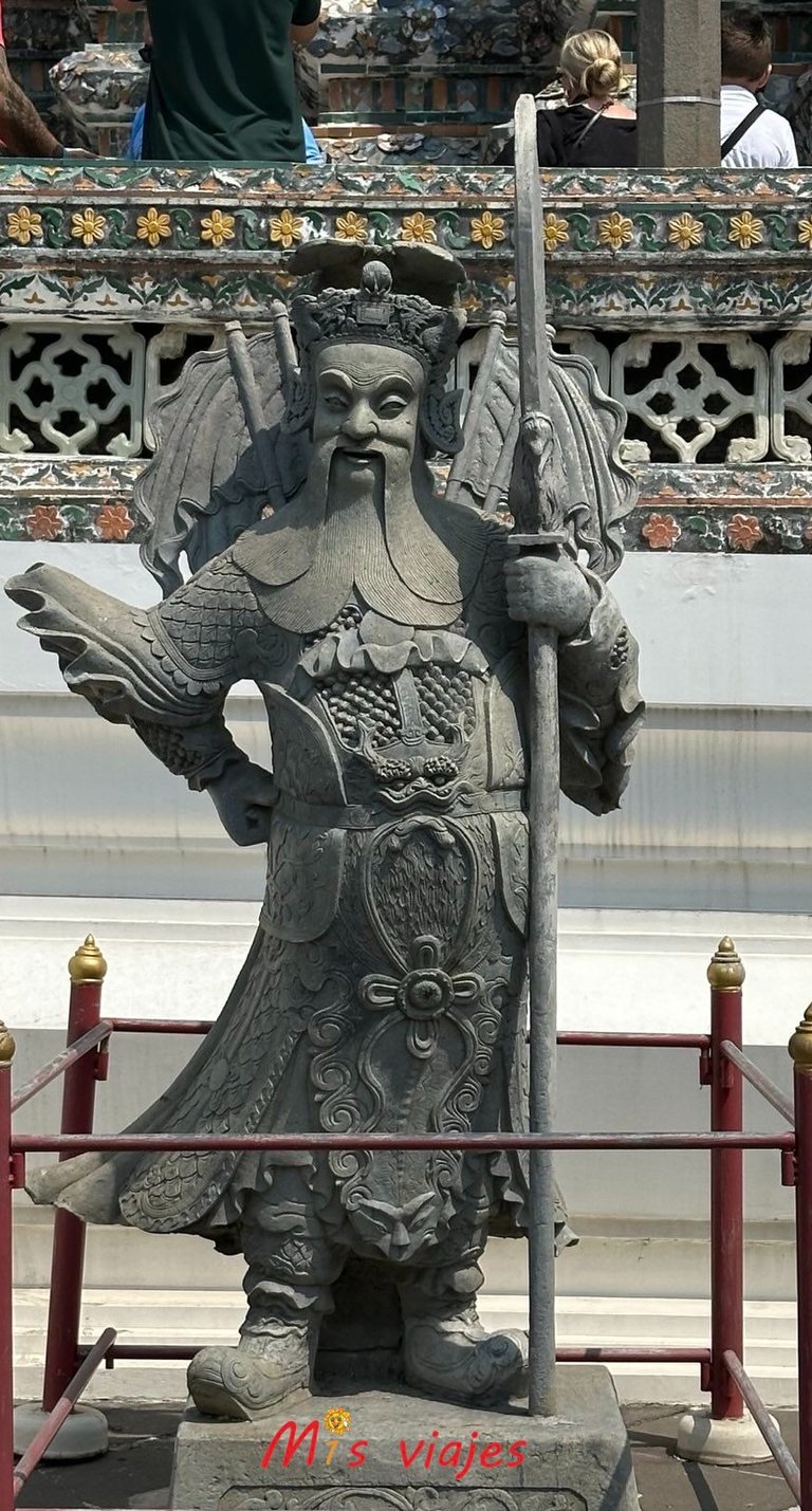 A lo largo del complejo de Wat Arun, encontrarás estatuas de guardianes que protegen el templo.