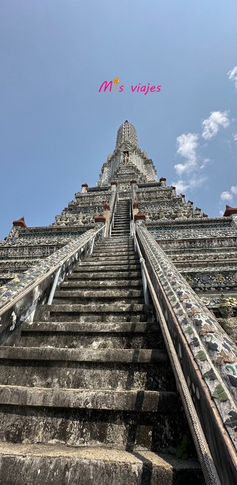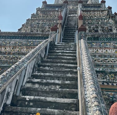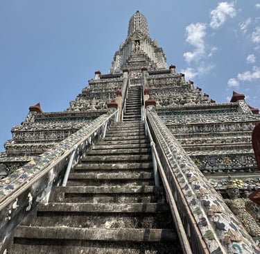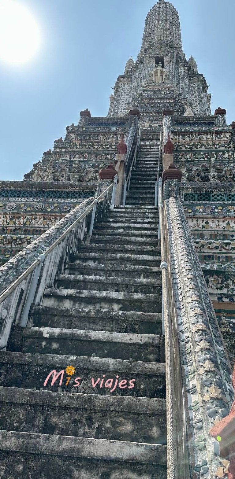 En la prang del Wat Arun, las escalinatas se dividen en varios niveles.