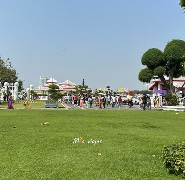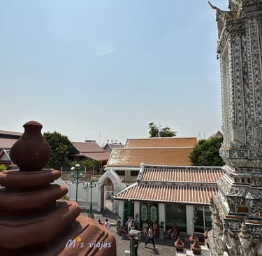 Desde la escalinata de la torre principal (Prag) vemos la plaza central y el río Chao Phraya.